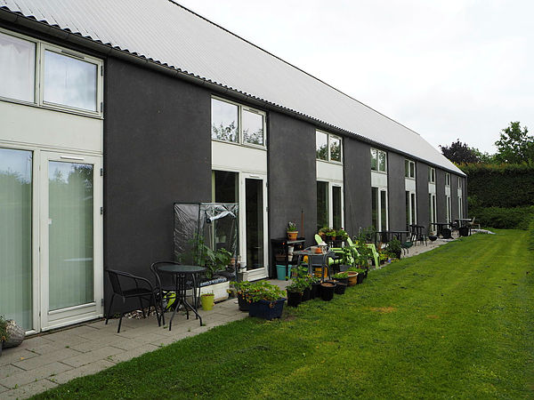 Rækkehusene på Bymosevej er både i et og to plan. Etværelsesboligerne er i et plan; toværelsesboligerne i to plan. Til alle boliger hører der en lille have med terrasse. Desuden har hver bolig adgang til et tremmerum i kælderen.